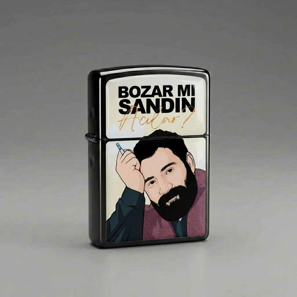 Ahmet kaya tasarımlı arabesk benzinli siyah çakmak