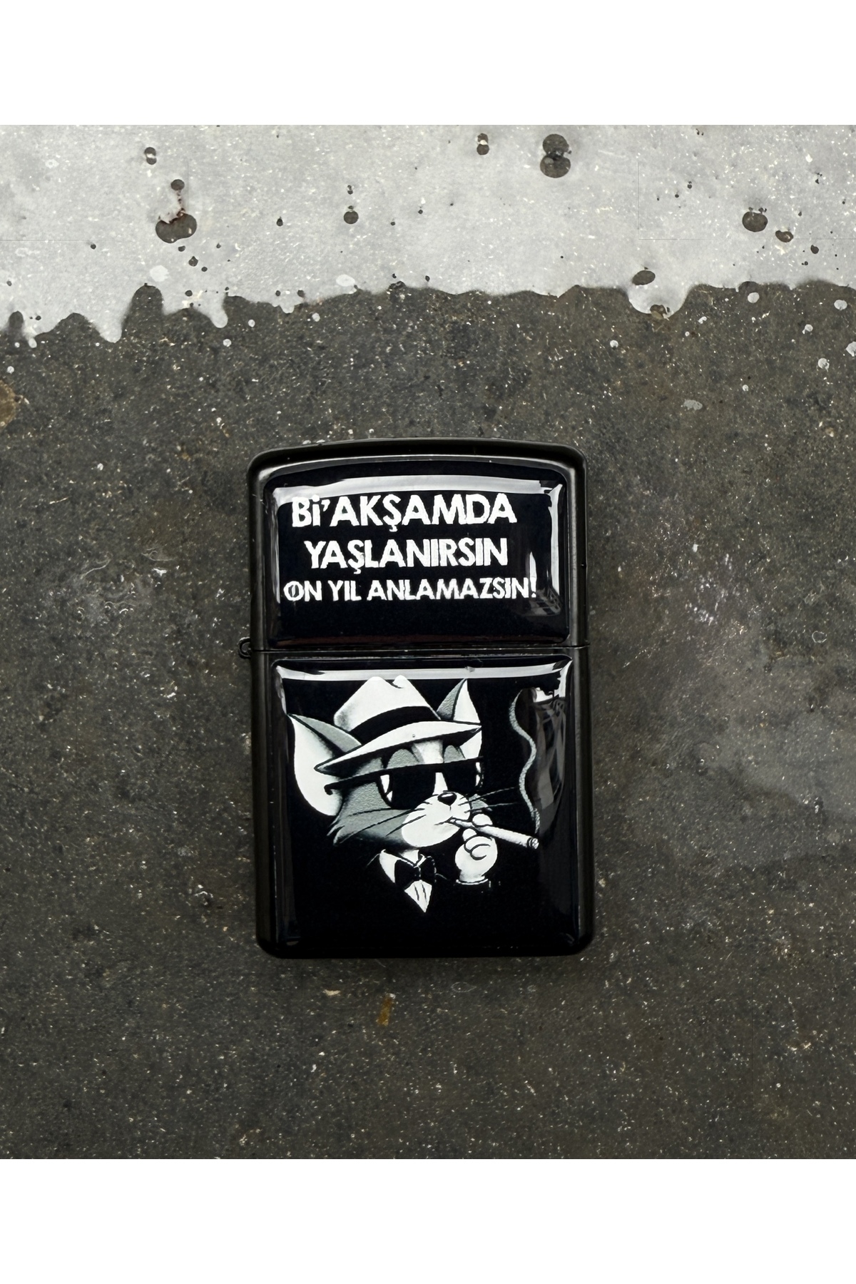 BİR AKŞAMDA YAŞLANIRSIN ON YIL ANLAMAZSIN Tasarımlı Benzinli Siyah Çakmak