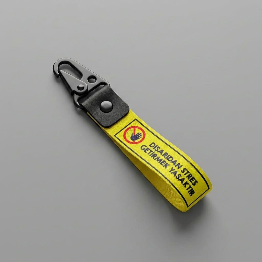 DIŞARIDAN STRES GETİRMEK YASAKTIR Tasarımlı Kumaş Otomobil Motorsiklet Anahtarlık