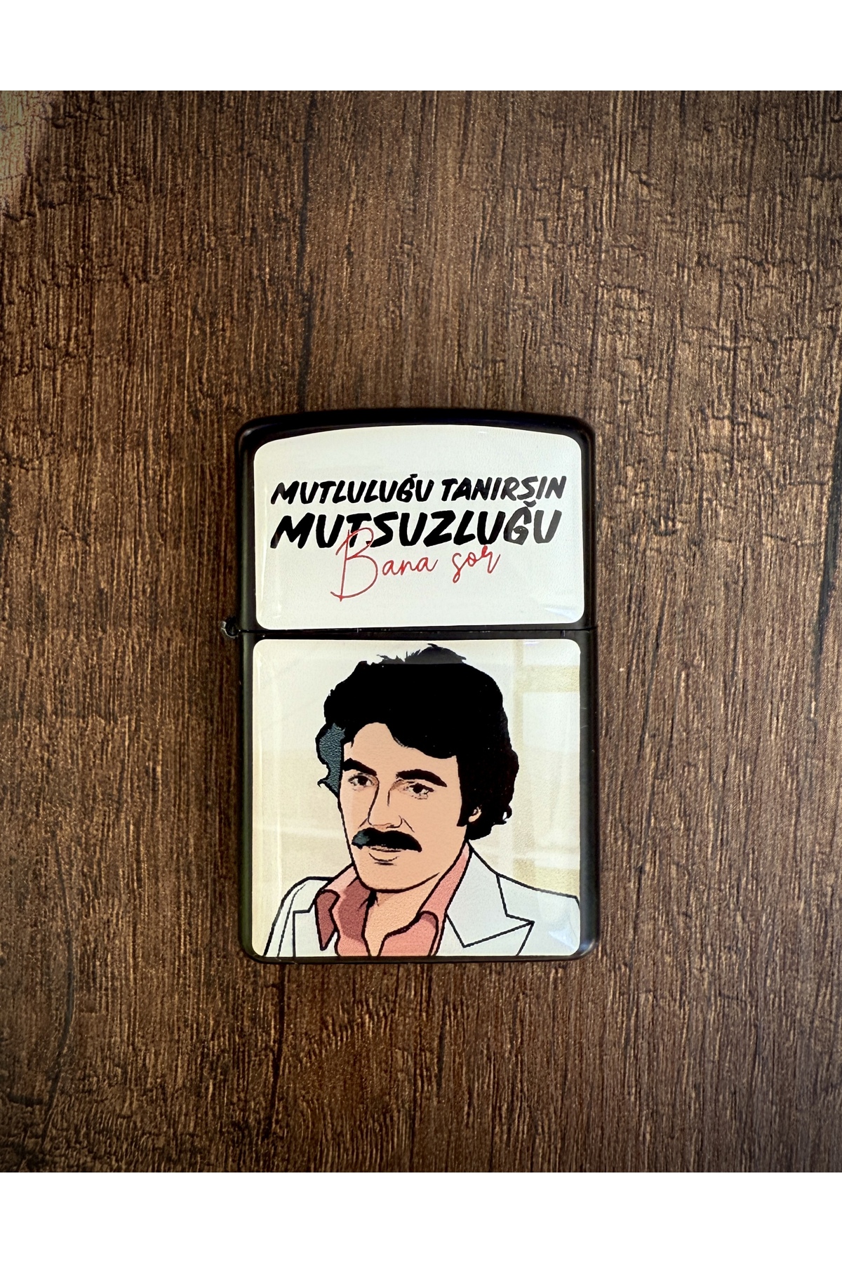 Ferdi Tayfur Tasarımlı Arabesk Benzinli Siyah Çakmak Etiket Tek yönlüdür.