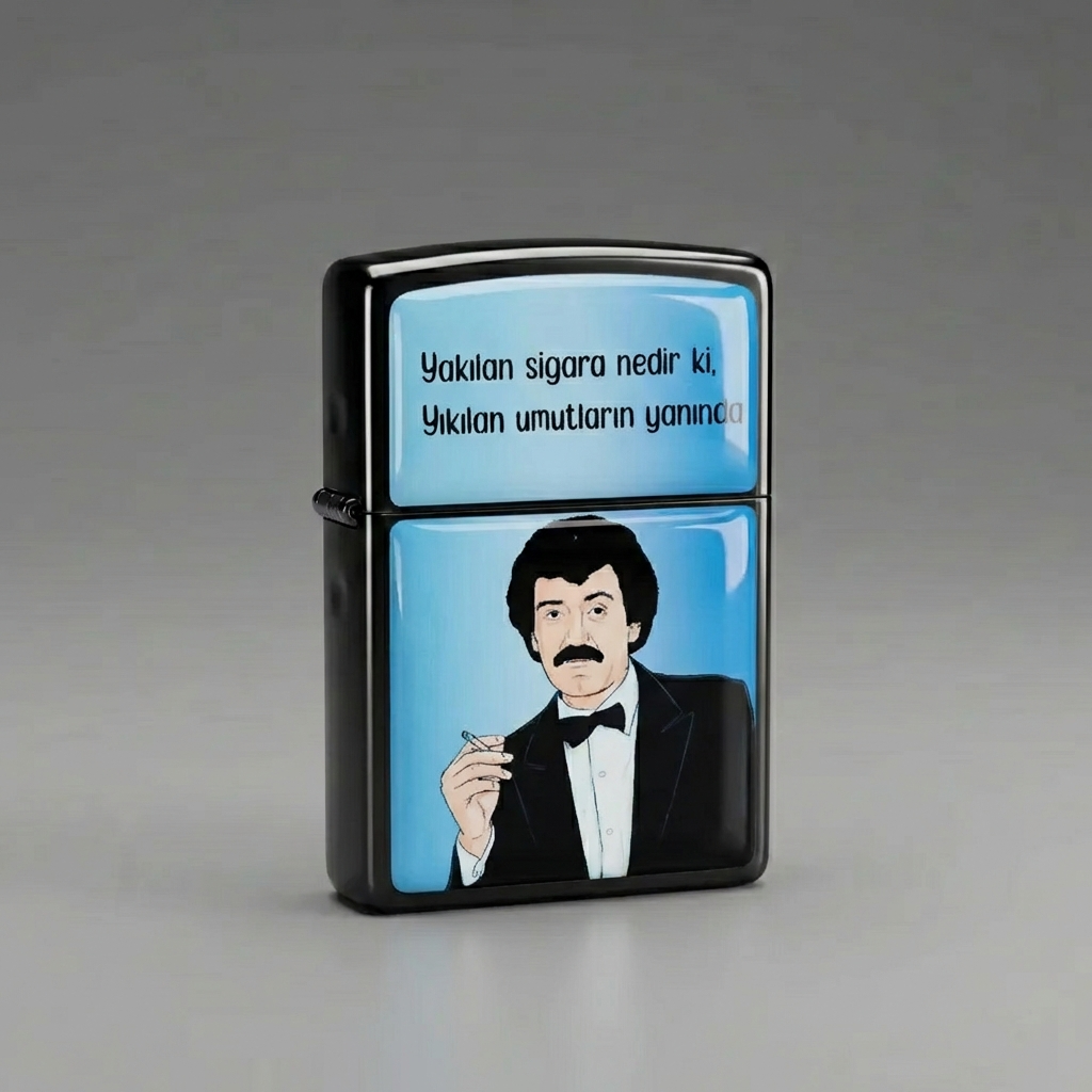 Müslüm Gürses Tasarımlı Arabesk Benzinli Siyah Çakmak